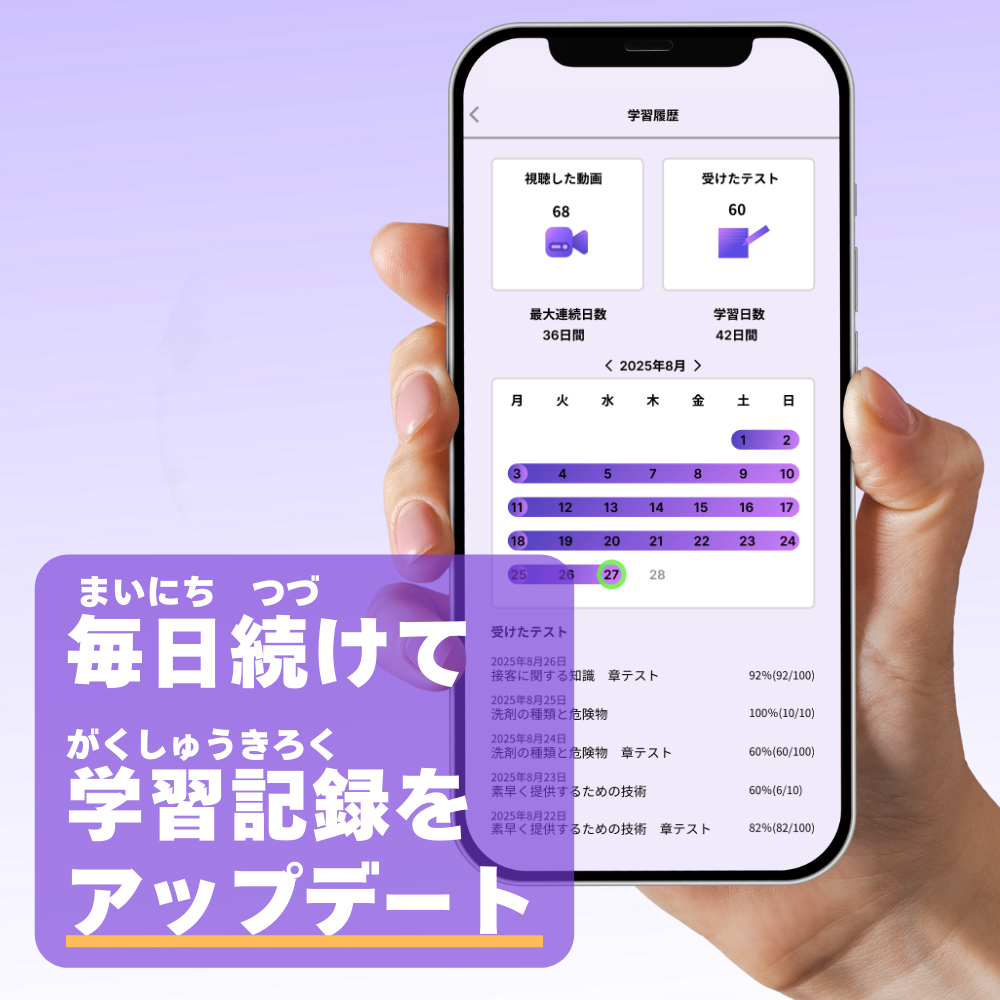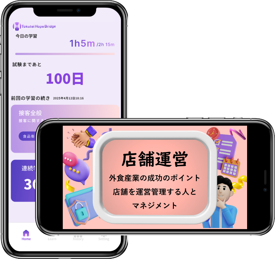 外食業・飲食料品製造業の1号・2号が学べます。今後様々な業種に対応していく予定です!